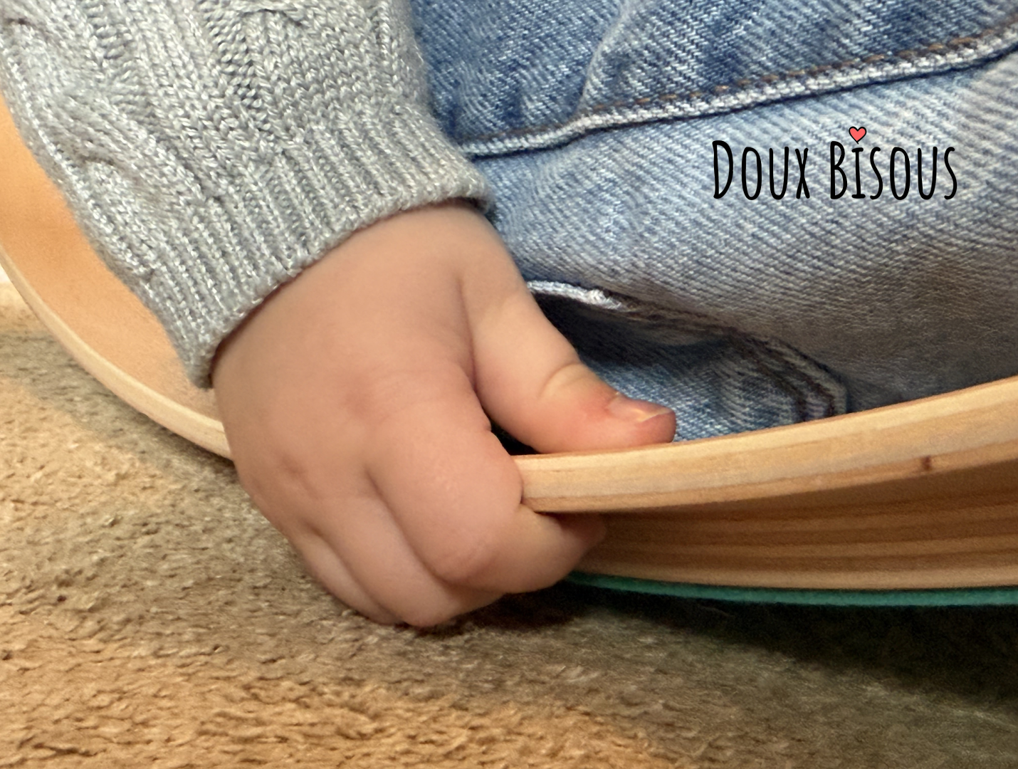 Een evenwichtsplank met vingerbescherming, ontworpen voor jonge kinderen vanaf 18 maanden.