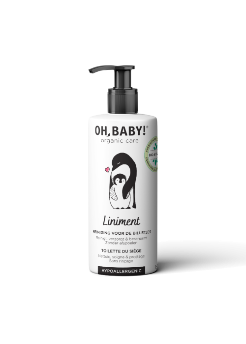 Dankzij een rijke mix van thermaal water en amandelolie, reinigt, verzacht en versterkt het Oh, Baby! Liniment de beschermlaag van de luierzone. Dit biologisch liniment bevat ook pre-en probiotica om de billetjes tegen schadelijke bacteria te beschermen en om luiereczeem te helpen vermijden. Daarenboven bevat deze formule ook vitamine A, B, D en E. En, natuurlijk, zijn al onze producten dermatologisch getest en hypoallergeen! Bye, Bye luieruitslag!